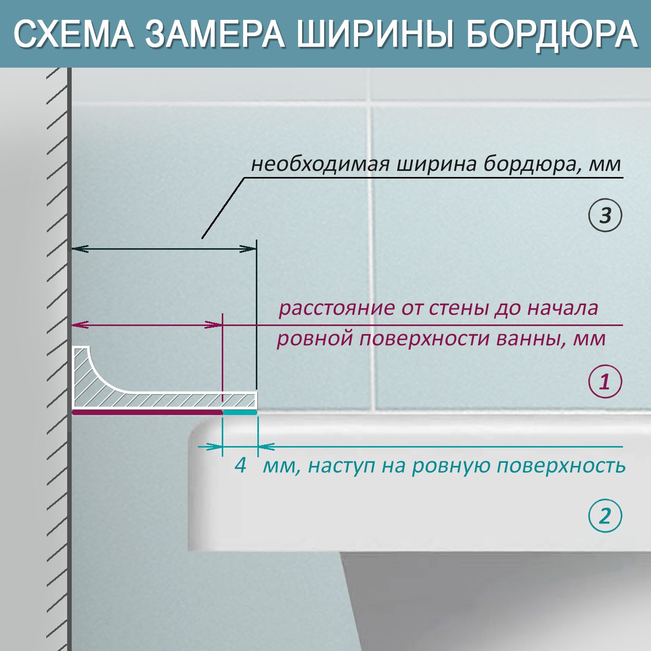 Обычно, если вам нужно перекрыть зазоры между плиткой и ванной по трем сторонам, вам потребуется: одна правая, одна левая и одна штука 180 см. Обратите внимание, что в описании к товарам есть ссылки на бордюры разной ширины – вы можете состыковать бордюры разной ширины.