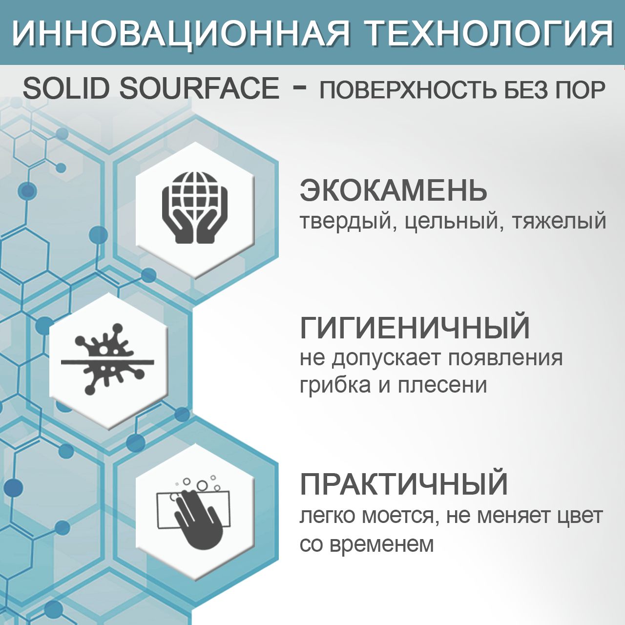 Акриловый камень из которого сделаны бордюры - это твердый, цельный материал. Прост в монтаже и уходе, не меняет свой цвет и форму. Не допускает появления грибка и плесени.